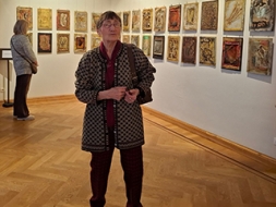 Par Ata Ieviņa personību un radošo darbību Cesvaines pilī stāsta māksliniece Inese Jakobi. Ieskats Ata Ieviņa radītajos darbos. Foto — INESE ELSIŅA